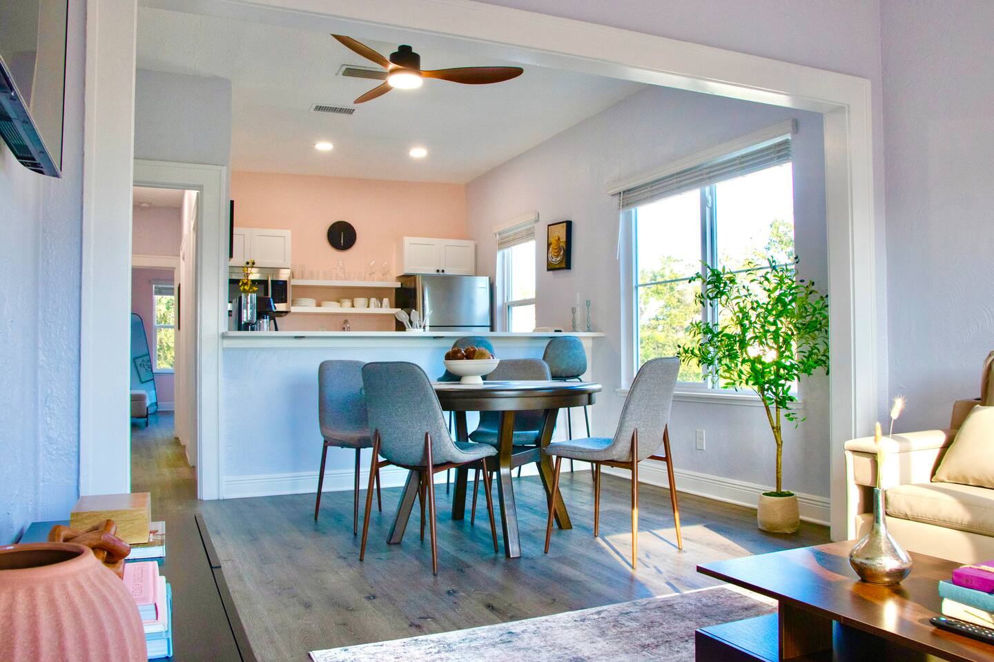 Contemporary Private Suite & Upscale King Suite Getaway WALKABLE (3–10 Minutes by Foot): Armature Works – ~8 min walk Tampa Riverwalk – ~6 min walk DRIVING: Tampa General Hospital – 7 min Downtown Tampa / Channelside District – 6–8 min Curtis Hixon Waterfront Park – 5 min University of Tampa (UT) – 5 min Amalie Arena – 8 min Raymond James Stadium – 8–10 min Busch Gardens Tampa Bay – 18–20 min Seminole Hard Rock Hotel – 18–22 min Clearwater Beach – ~30–35 min St. Pete Beach – ~30–40 min